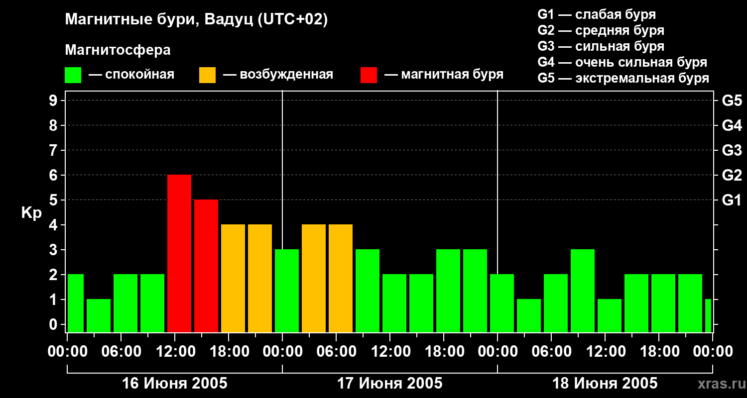 Магнитные бури в Вадуце — 18 июня 2005 года