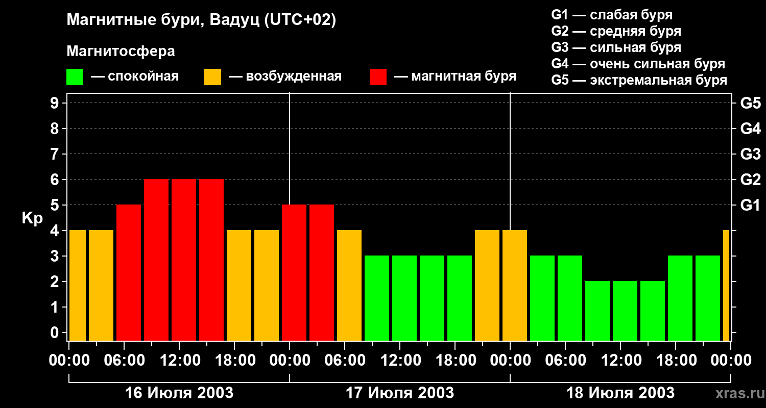 Магнитные бури в Вадуце — 18 июля 2003 года