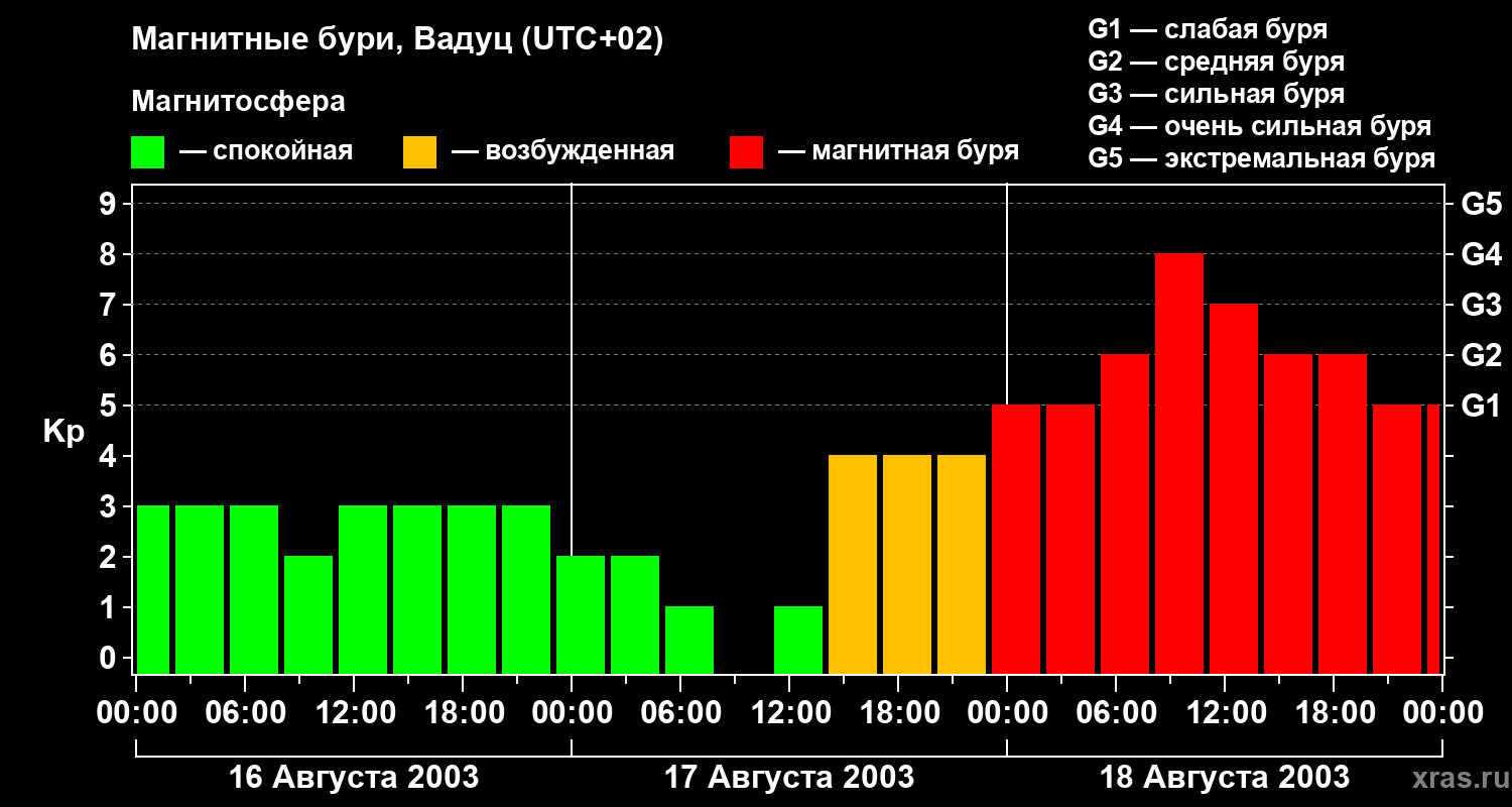 Магнитные бури в Вадуце — 18 августа 2003 года