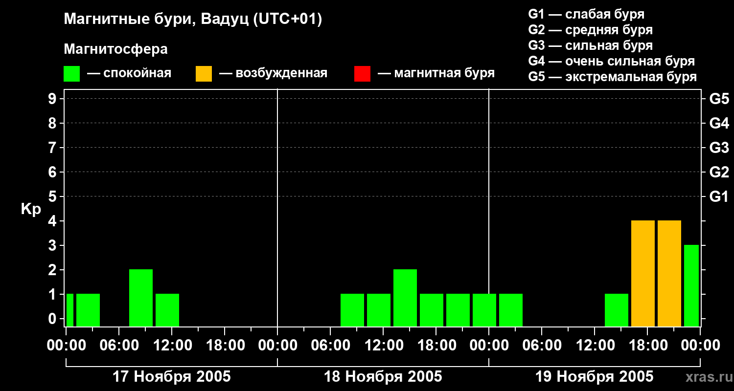 Магнитные бури в Вадуце — 19 ноября 2005 года