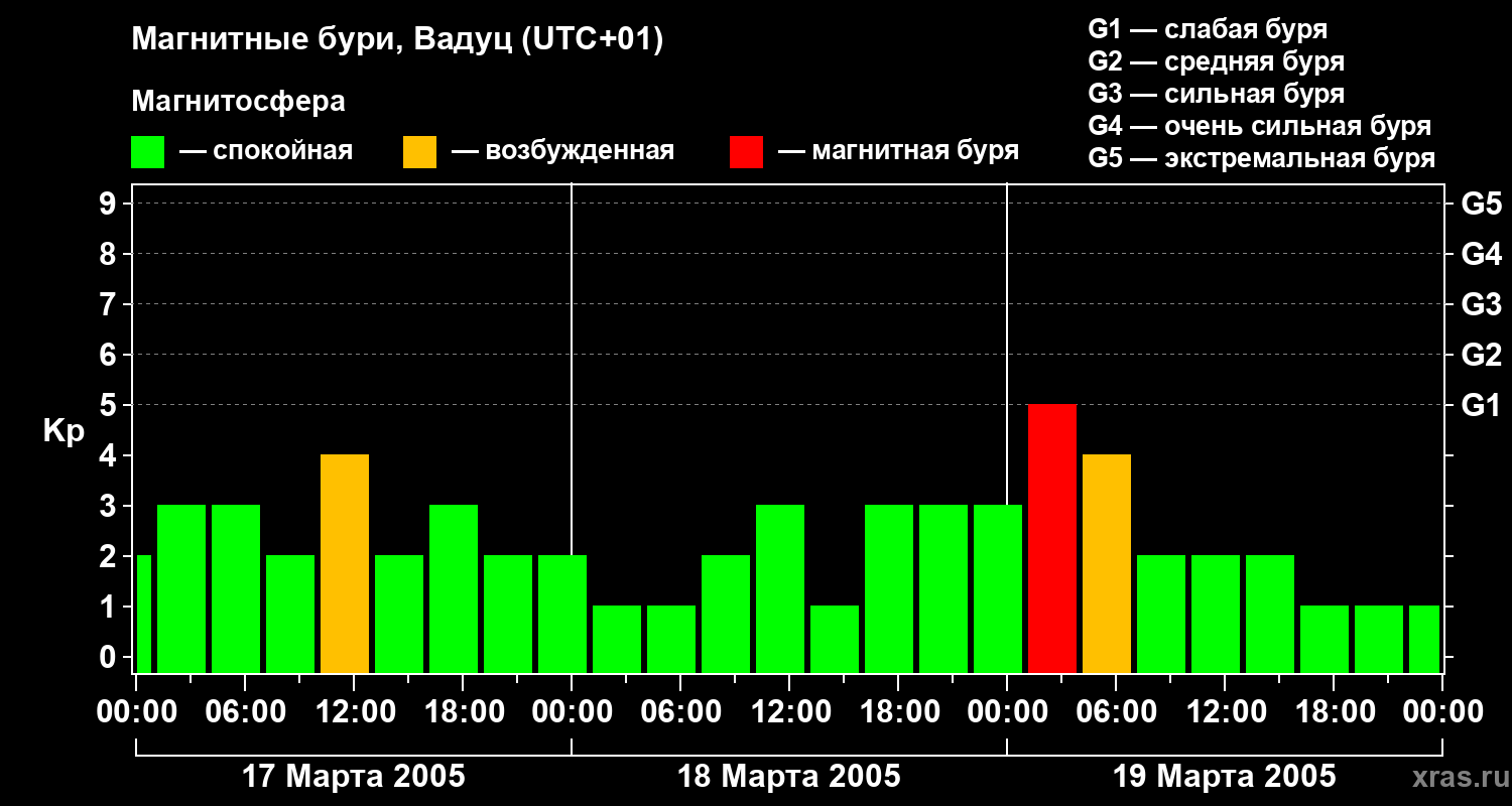 Магнитные бури в Вадуце — 19 марта 2005 года