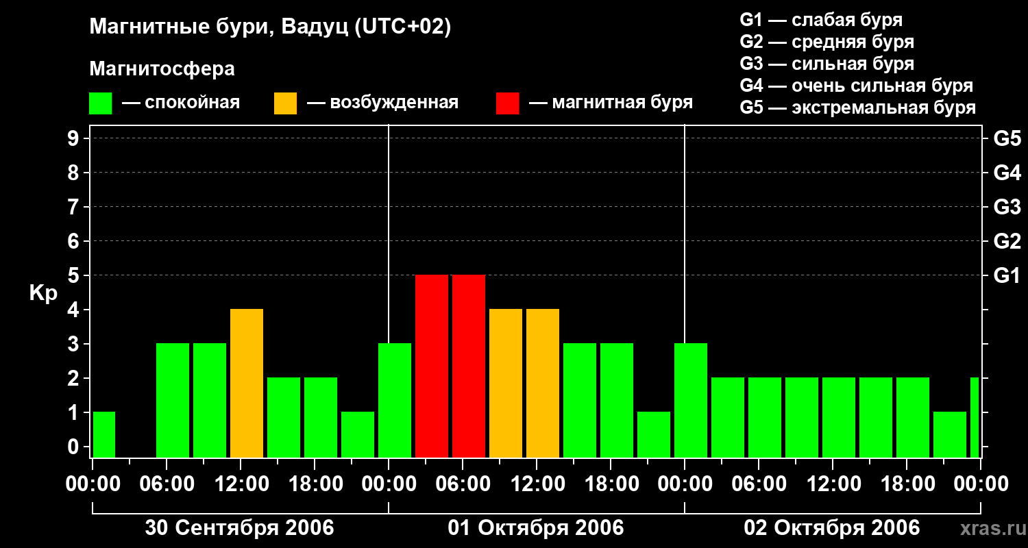 Магнитные бури в Вадуце — 2 октября 2006 года