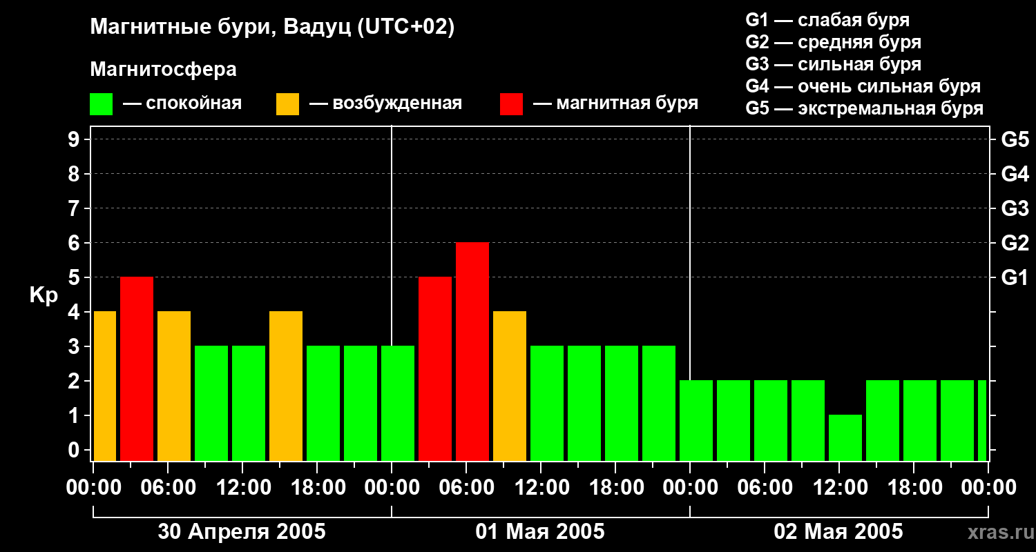 Магнитные бури в Вадуце — 2 мая 2005 года