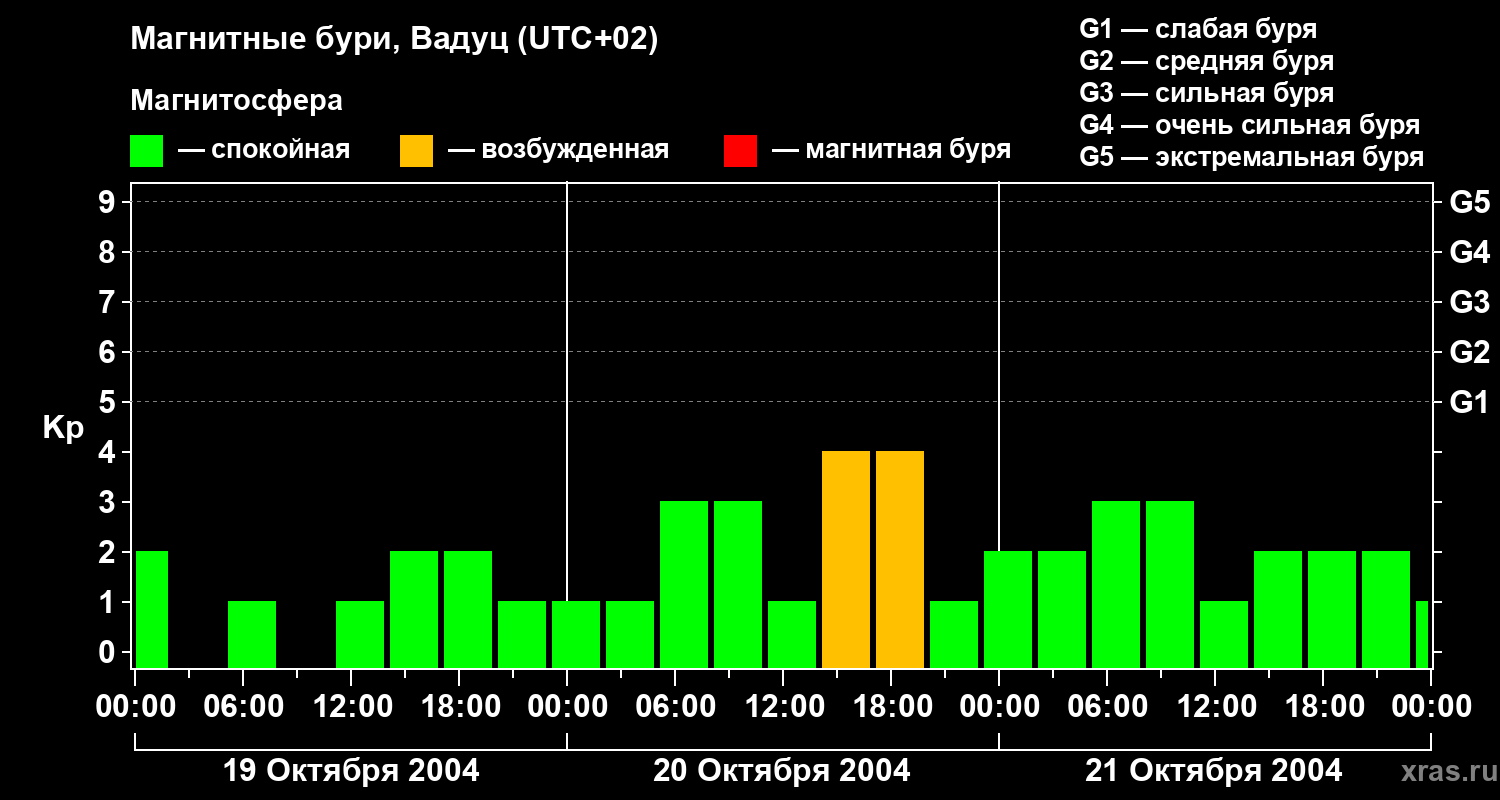 Магнитные бури в Вадуце — 21 октября 2004 года