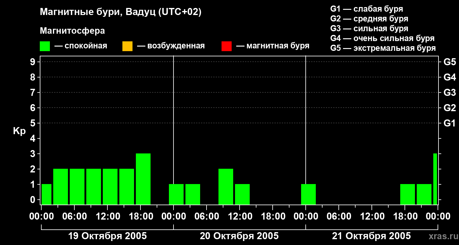 Магнитные бури в Вадуце — 21 октября 2005 года