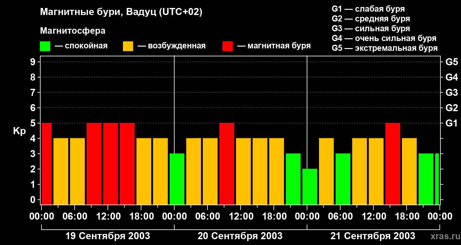Магнитные бури в Вадуце 21 сентября 2003 года