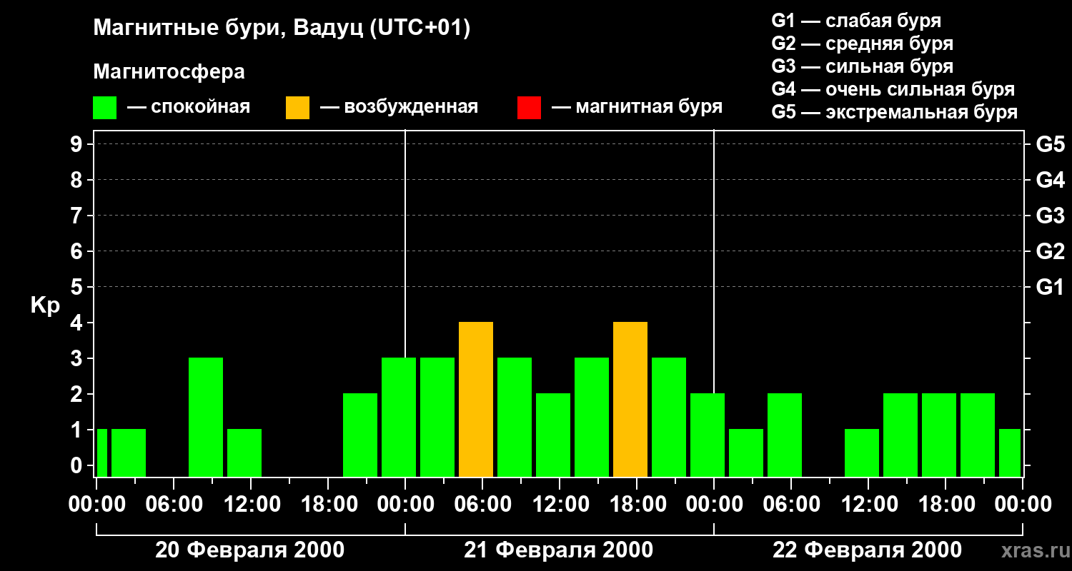 Магнитные бури в Вадуце — 22 февраля 2000 года