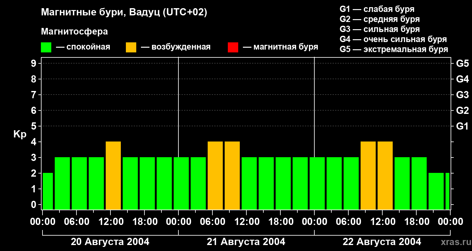 Магнитные бури в Вадуце — 22 августа 2004 года