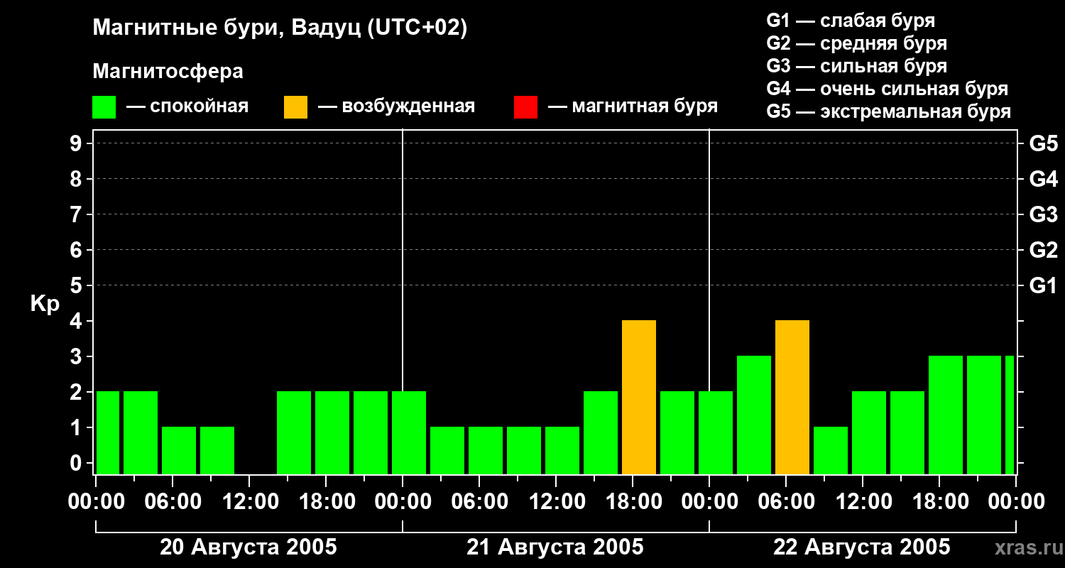 Магнитные бури в Вадуце — 22 августа 2005 года