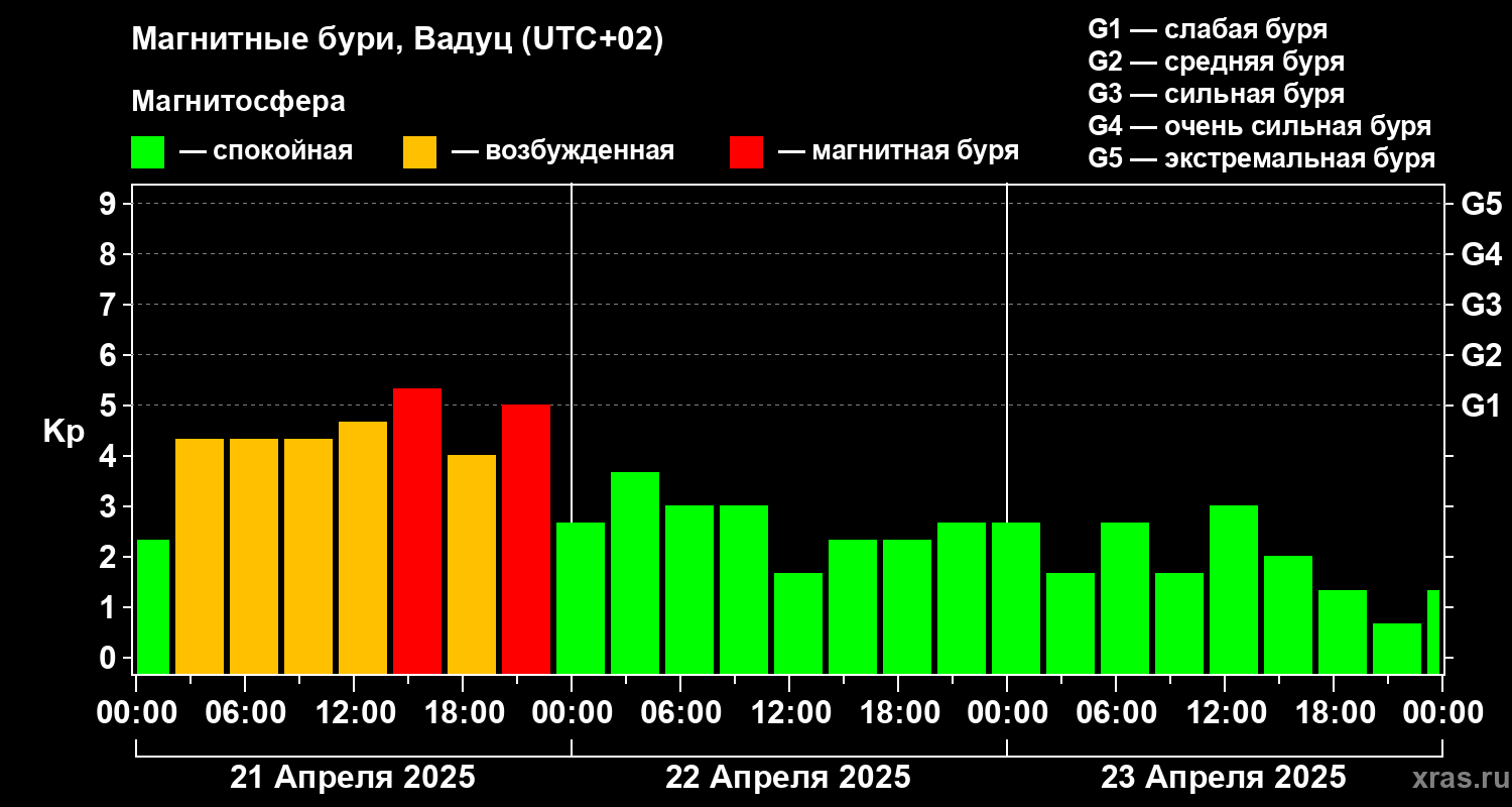 Магнитные бури в Вадуце — 23 апреля 2025 года