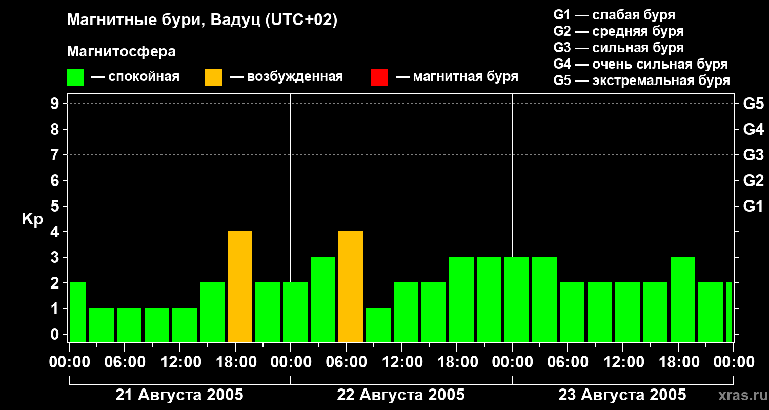 Магнитные бури в Вадуце — 23 августа 2005 года