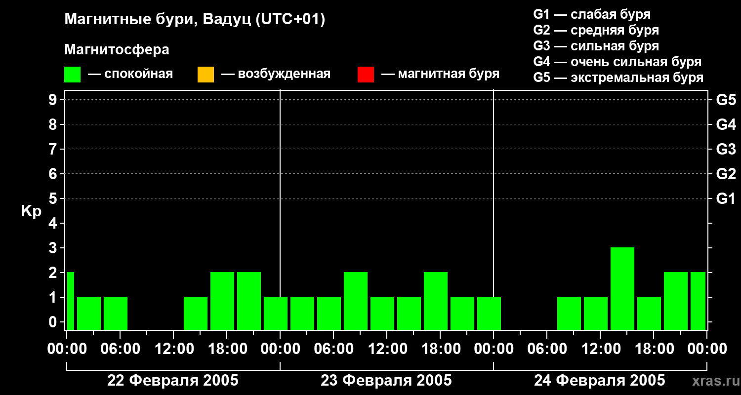 Магнитные бури в Вадуце — 24 февраля 2005 года