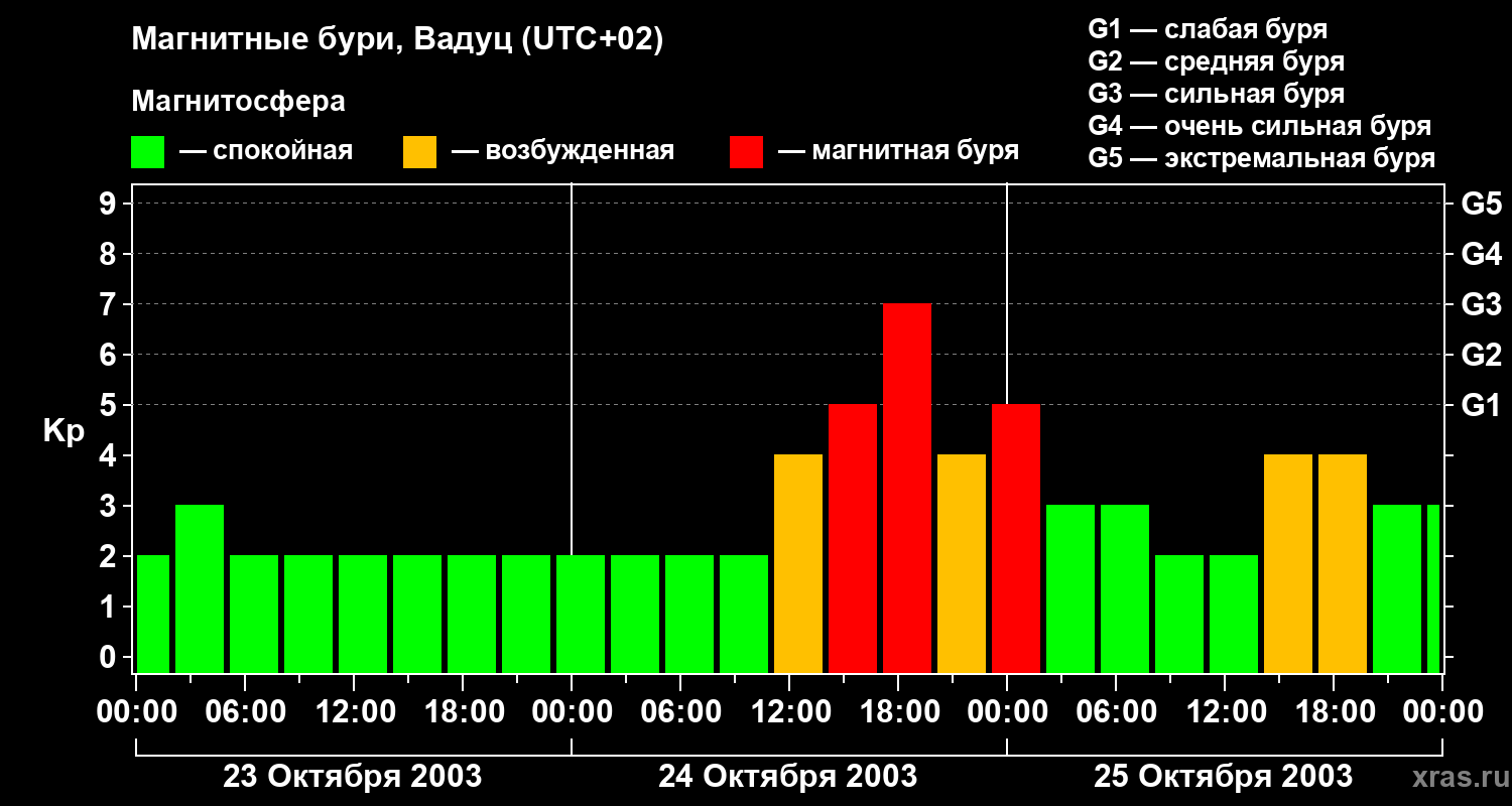 Магнитные бури в Вадуце — 25 октября 2003 года