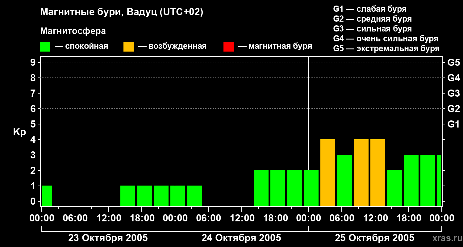 Магнитные бури в Вадуце — 25 октября 2005 года