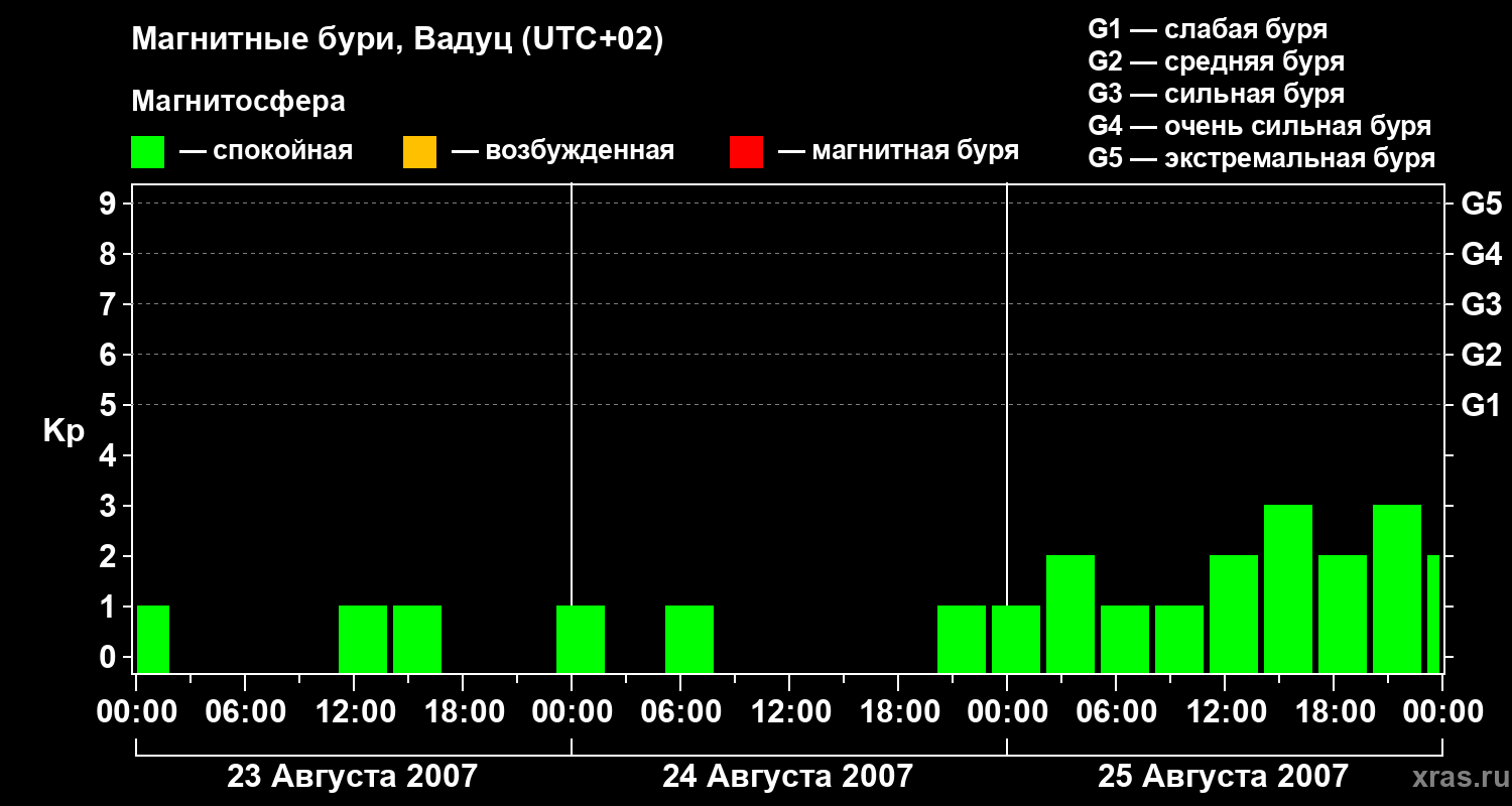 Магнитные бури в Вадуце — 25 августа 2007 года