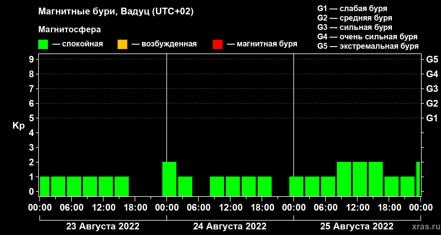 Магнитные бури в Вадуце — 25 августа 2022 года