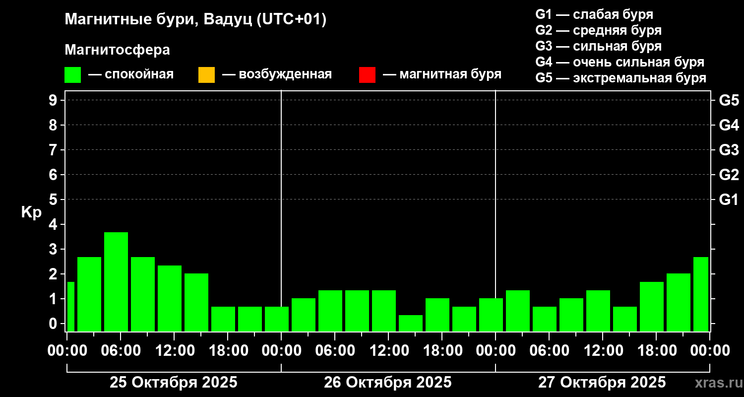 Магнитные бури в Вадуце — 27 октября 2025 года