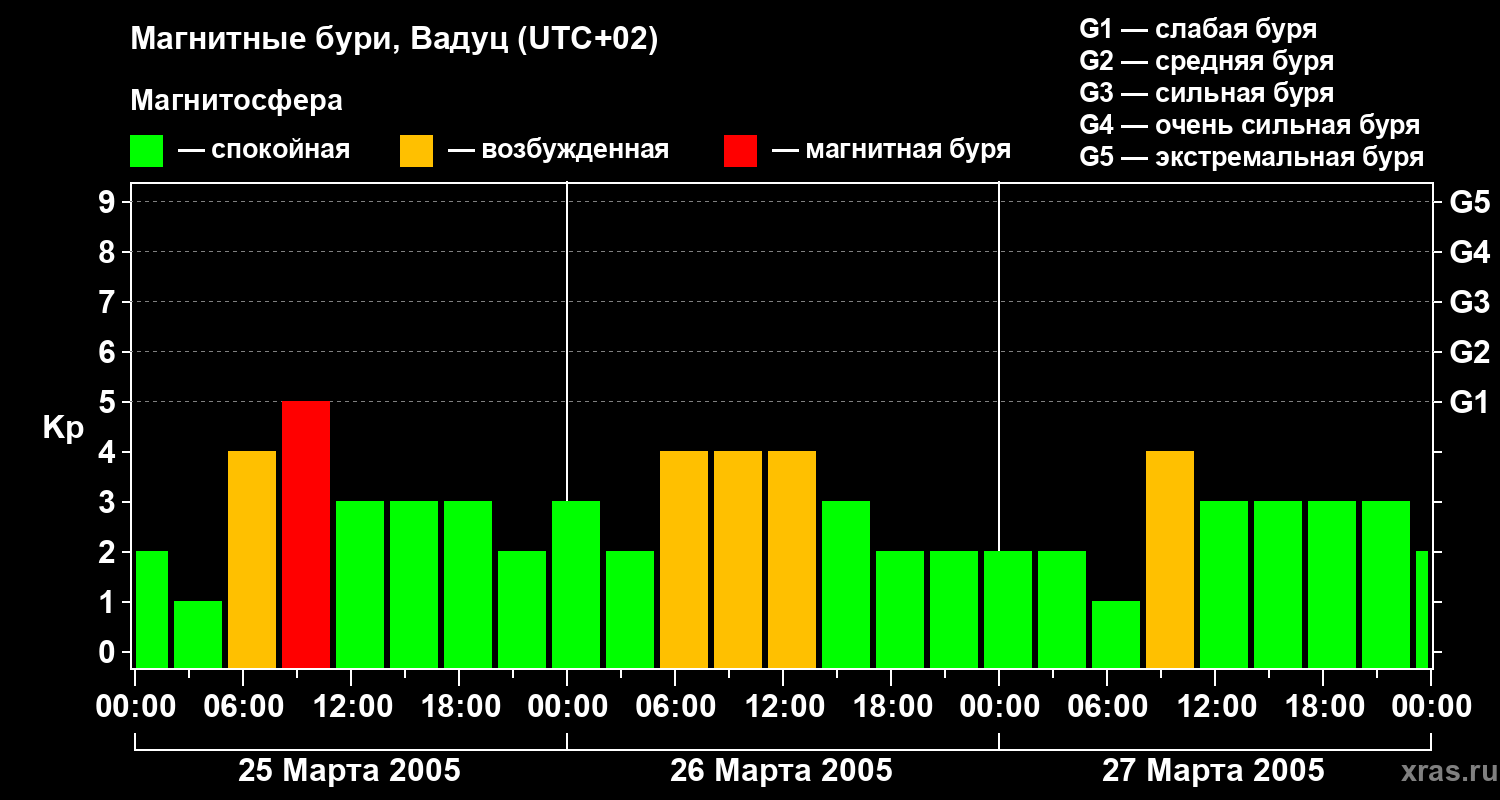 Магнитные бури в Вадуце — 27 марта 2005 года