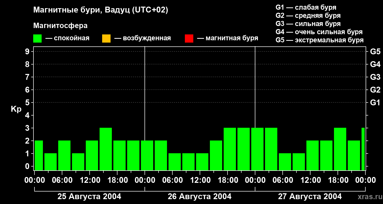 Магнитные бури в Вадуце — 27 августа 2004 года