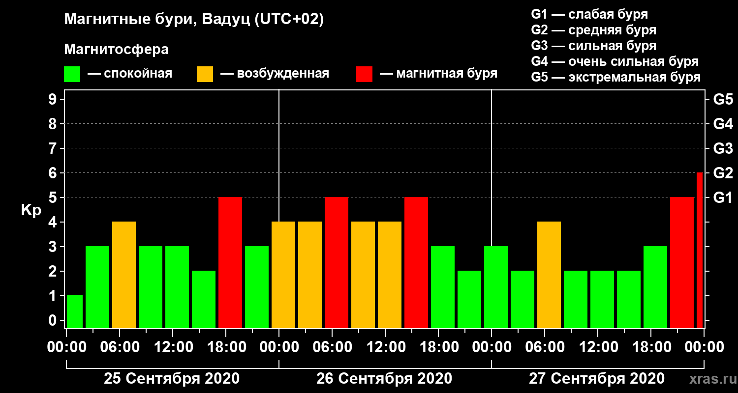 Магнитные бури в Вадуце 27 сентября 2020 года