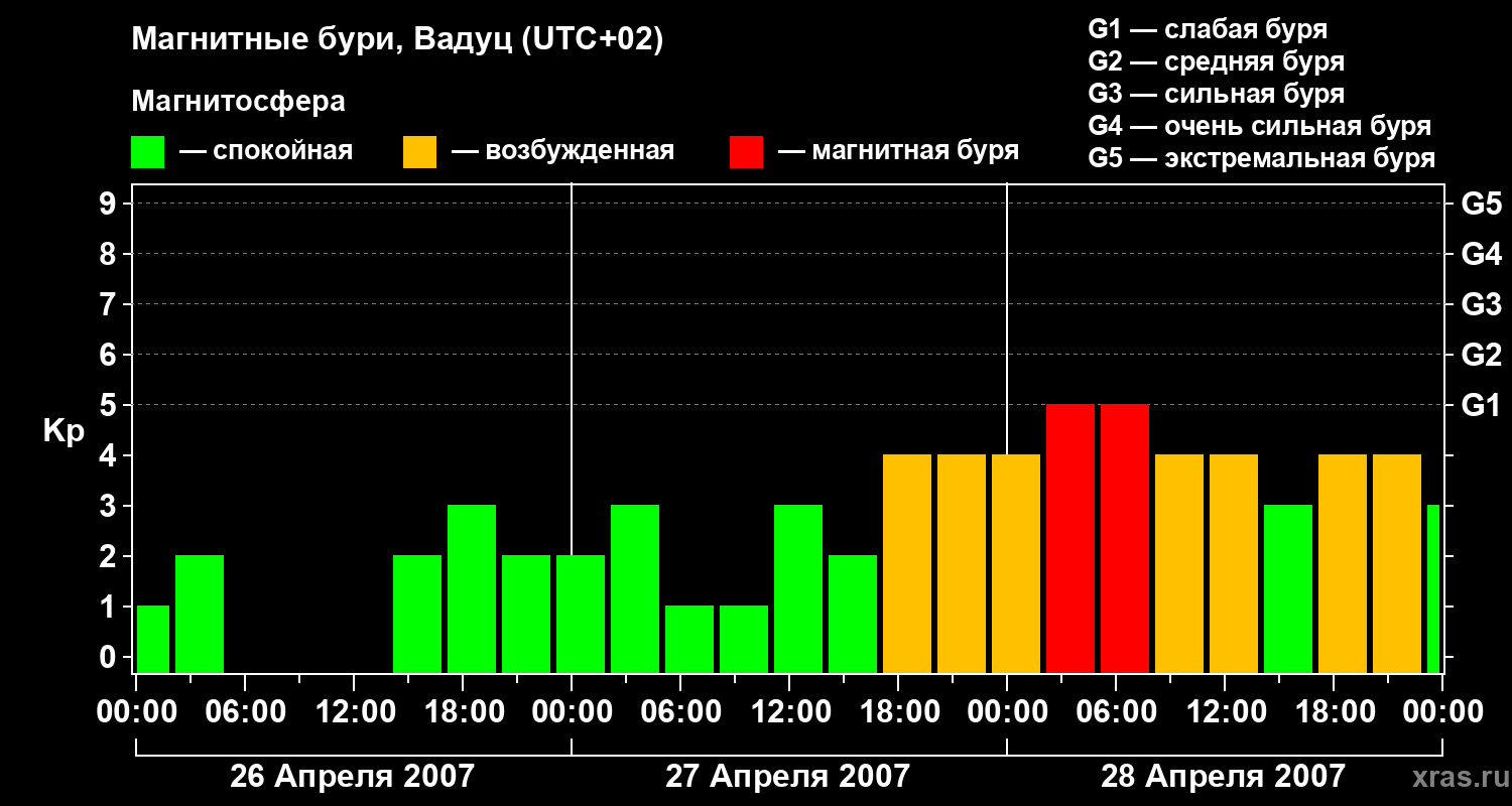 Магнитные бури в Вадуце — 28 апреля 2007 года