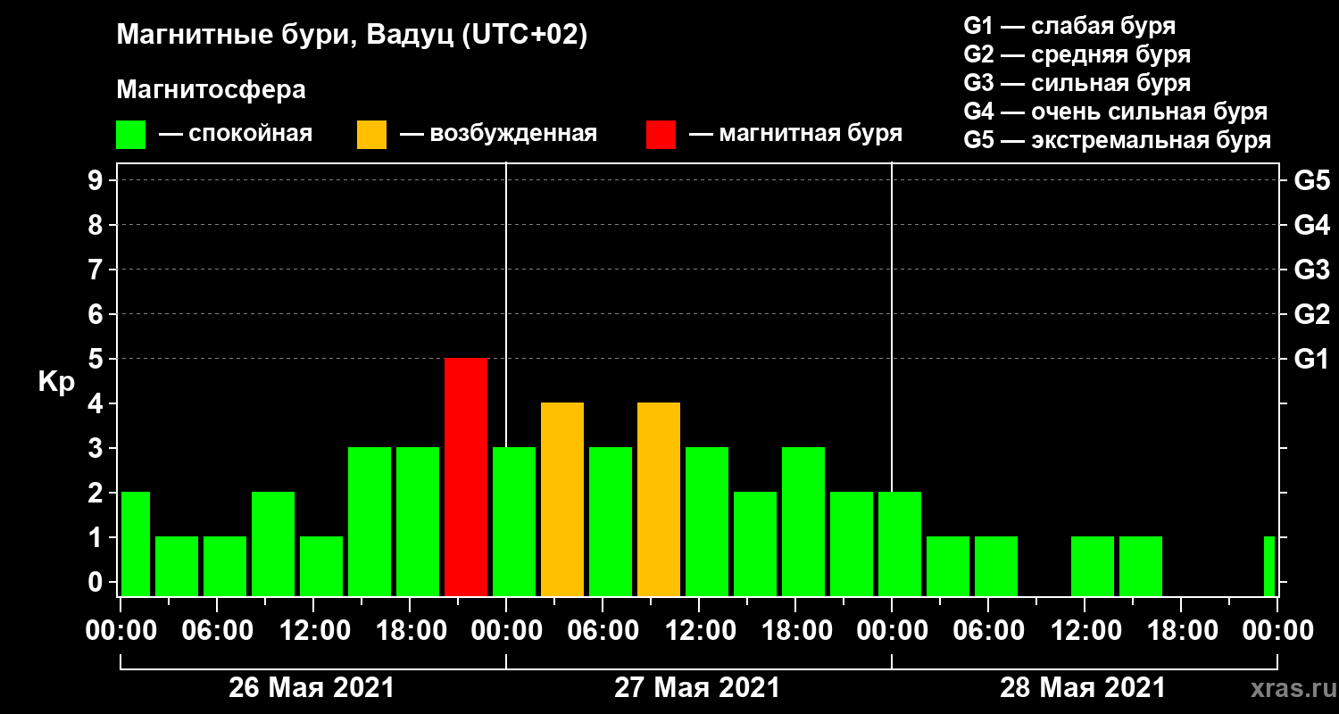 Магнитные бури в Вадуце — 28 мая 2021 года
