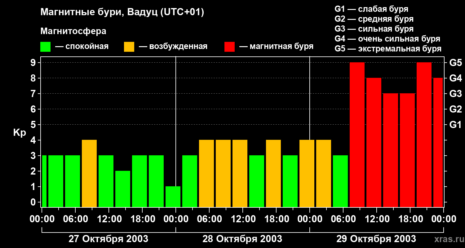 Магнитные бури в Вадуце — 29 октября 2003 года