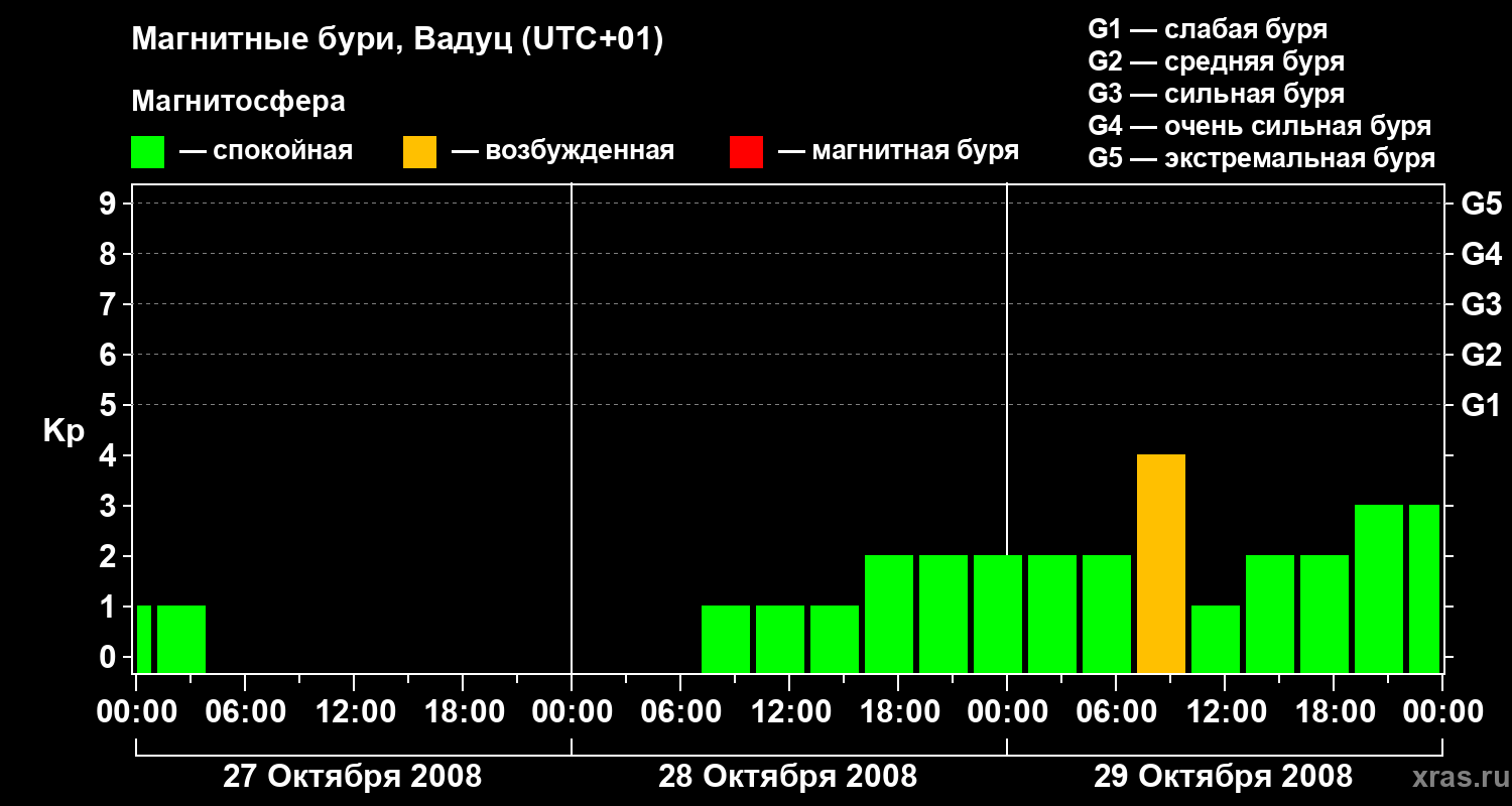 Магнитные бури в Вадуце — 29 октября 2008 года