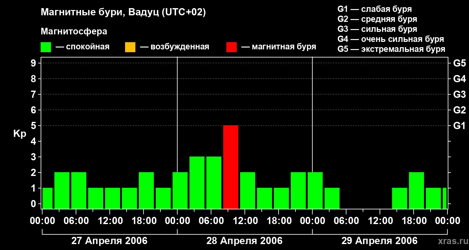 Магнитные бури в Вадуце — 29 апреля 2006 года