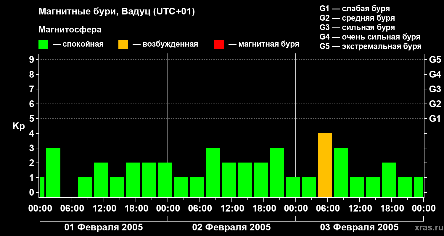 Магнитные бури в Вадуце — 3 февраля 2005 года