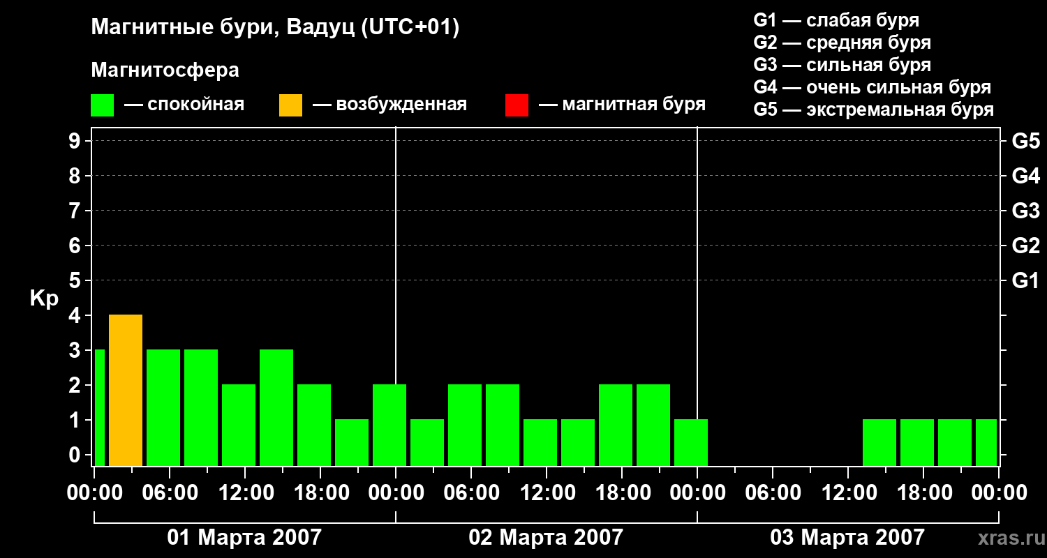 Магнитные бури в Вадуце — 3 марта 2007 года
