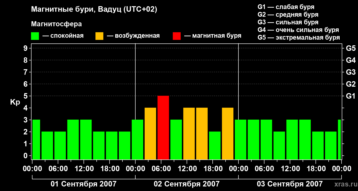Магнитные бури в Вадуце — 3 сентября 2007 года