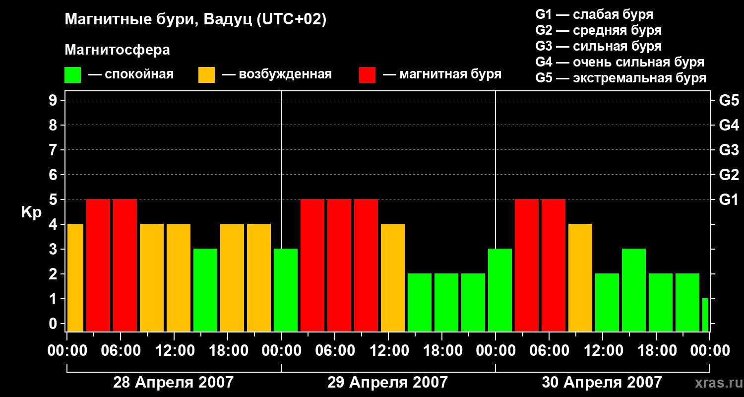 Магнитные бури в Вадуце — 30 апреля 2007 года