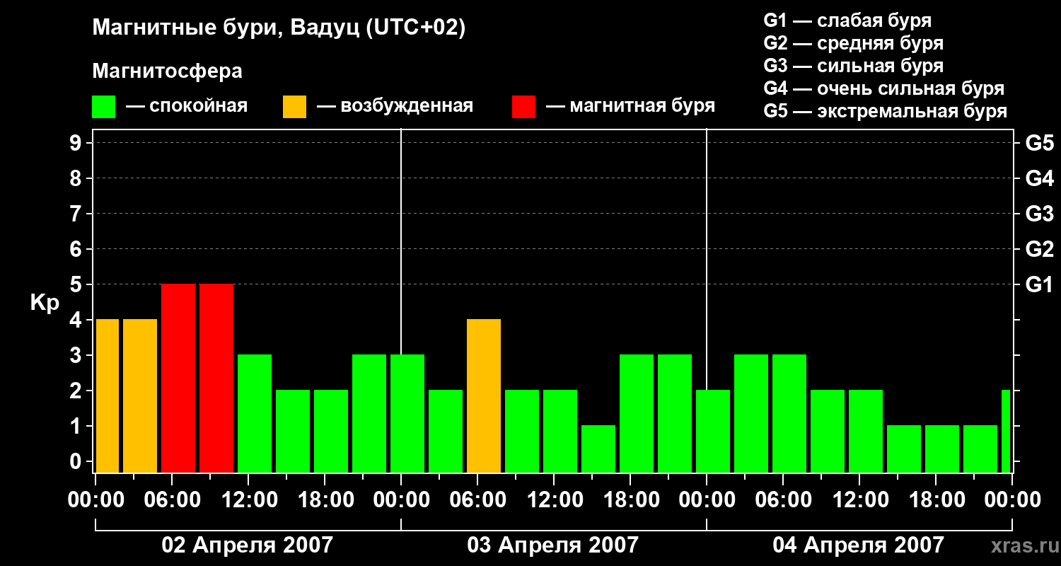 Магнитные бури в Вадуце — 4 апреля 2007 года