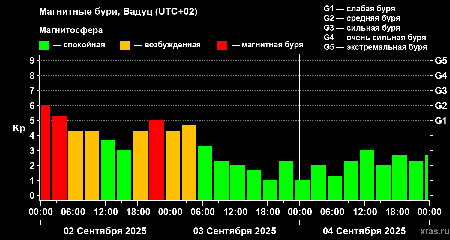 Магнитные бури в Вадуце 4 сентября 2025 года