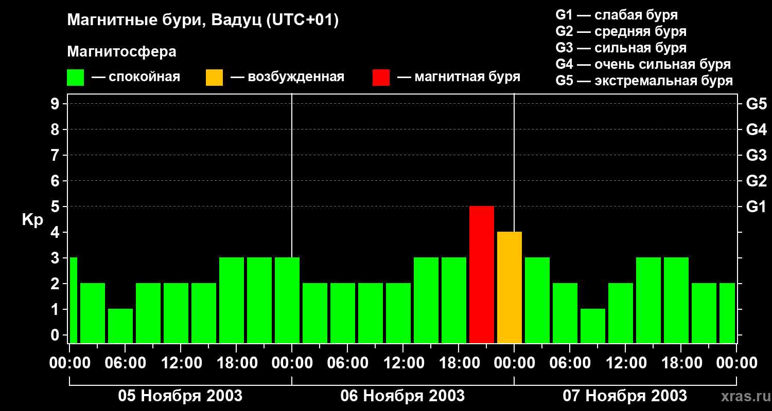 Магнитные бури в Вадуце — 7 ноября 2003 года