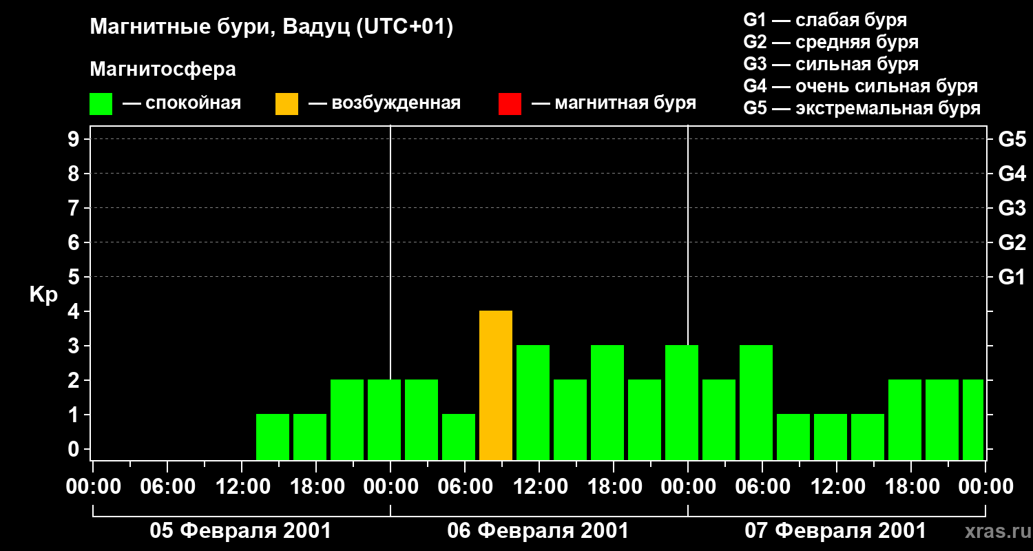 Магнитные бури в Вадуце — 7 февраля 2001 года