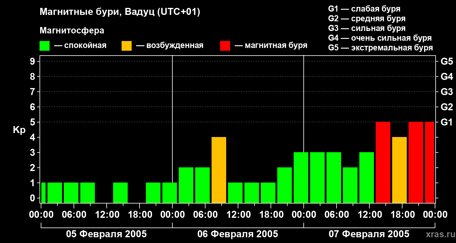 Магнитные бури в Вадуце в феврале 2005 года