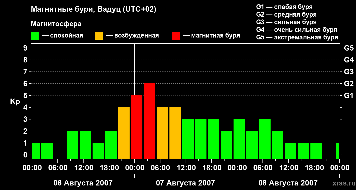 Магнитные бури в Вадуце — 8 августа 2007 года