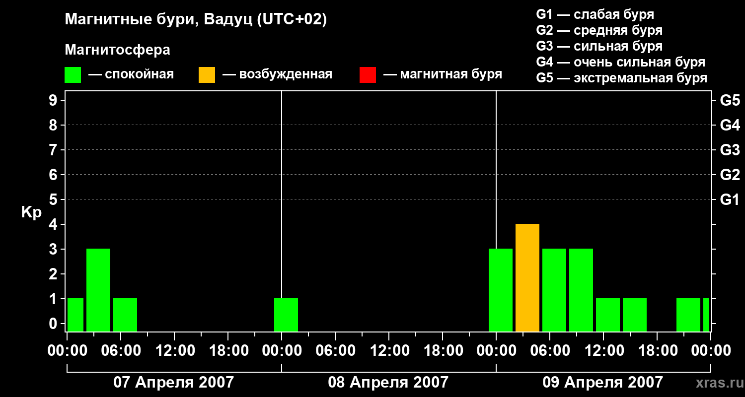 Магнитные бури в Вадуце — 9 апреля 2007 года