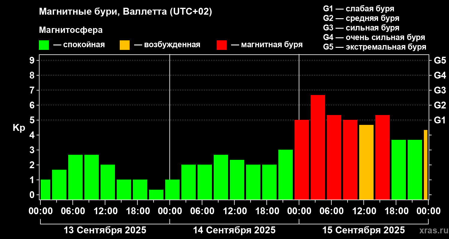 Магнитные бури в Валлетте — 15 сентября 2025 года