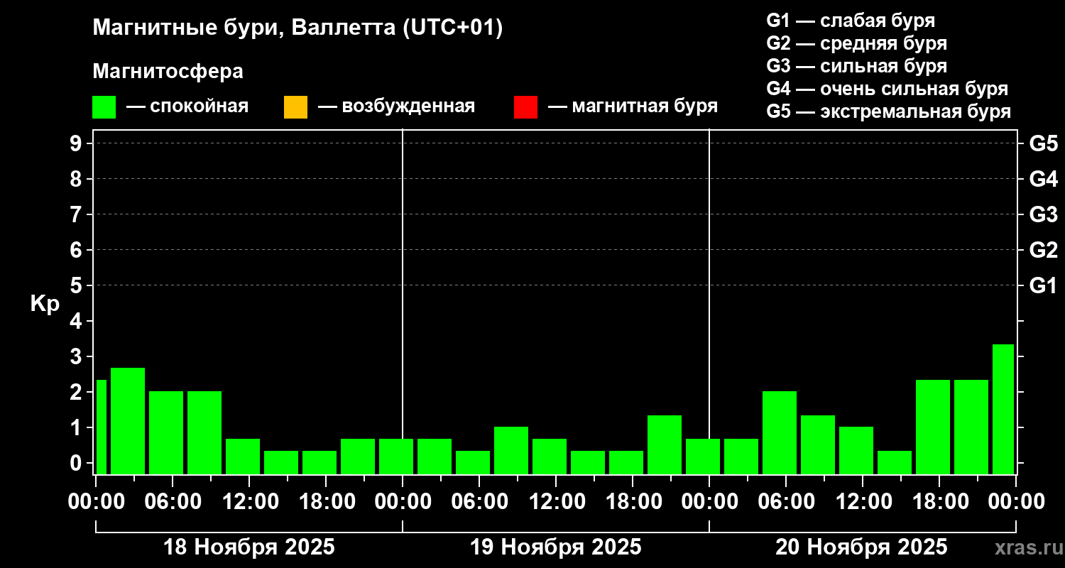 Магнитные бури в Валлетте 20 ноября 2025 года