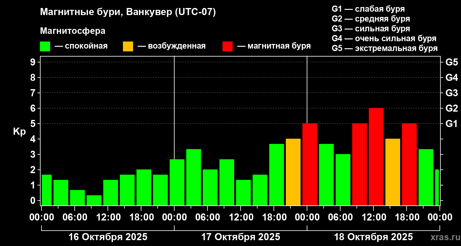 Магнитные бури в Ванкувере 18 октября 2025 года