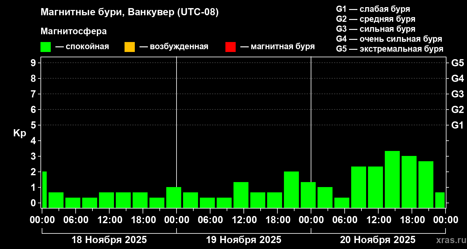 Магнитные бури в Ванкувере — 20 ноября 2025 года