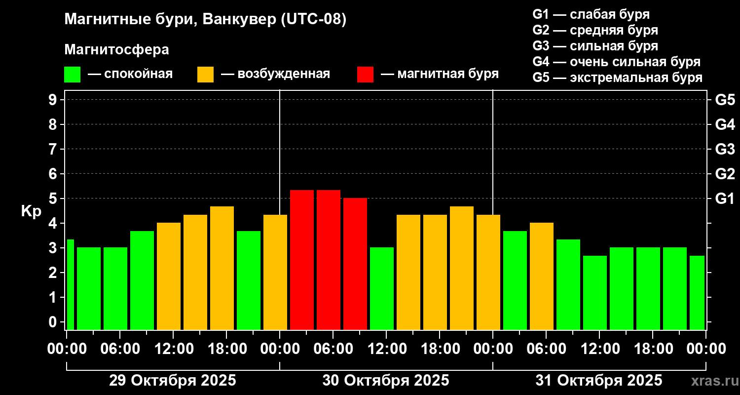 Магнитные бури в Ванкувере 31 октября 2025 года