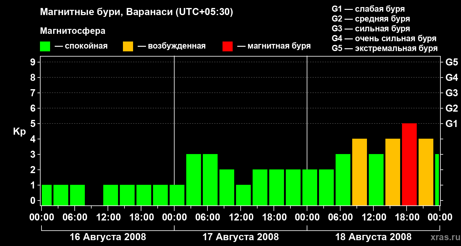 Магнитные бури Варанаси 18 августа 2008 года