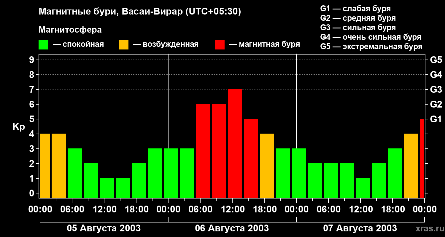 Магнитные бури в Васаи-Вираре — 7 августа 2003 года