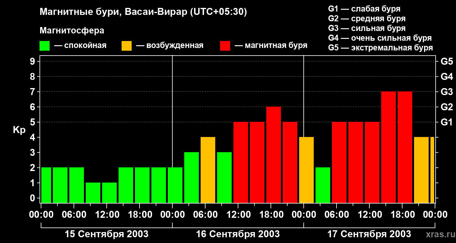 Магнитные бури в Васаи-Вираре — 17 сентября 2003 года