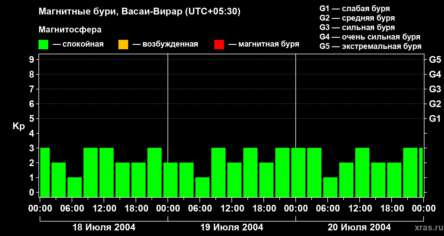 Магнитные бури в Васаи-Вираре — 20 июля 2004 года