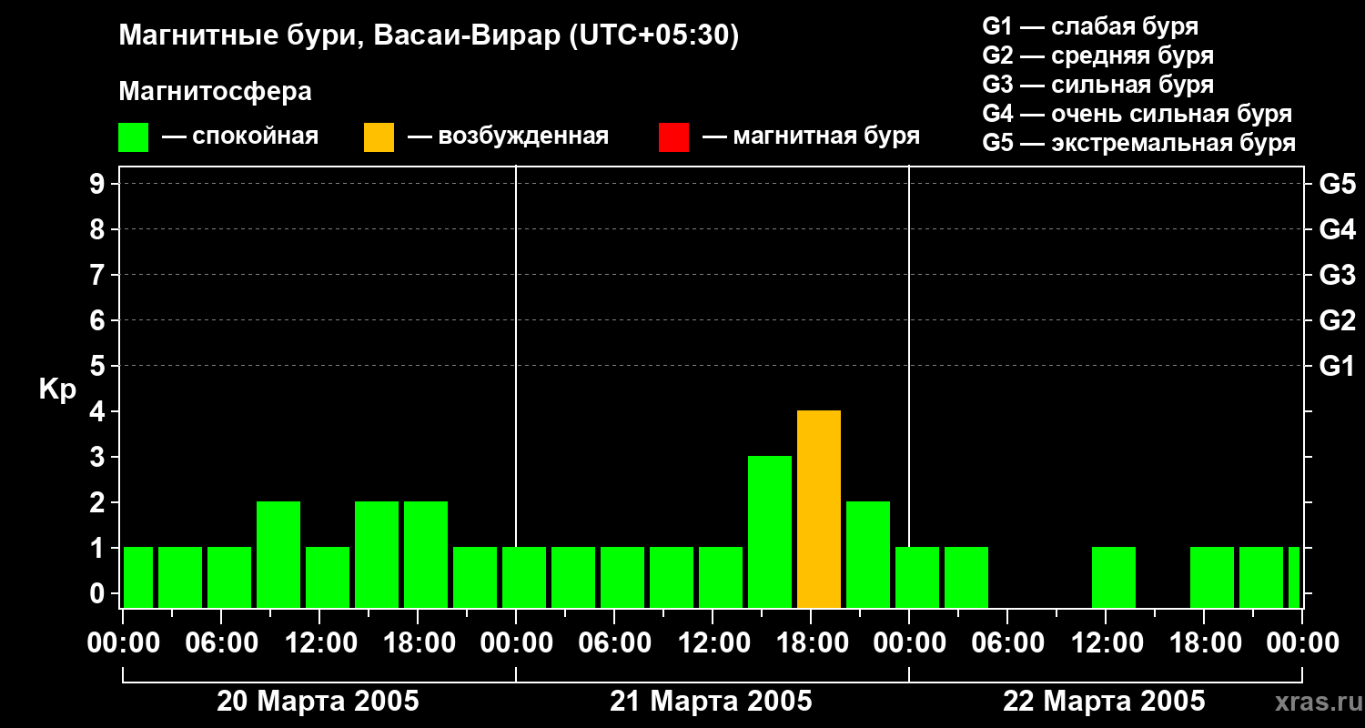 Магнитные бури в Васаи-Вираре — 22 марта 2005 года